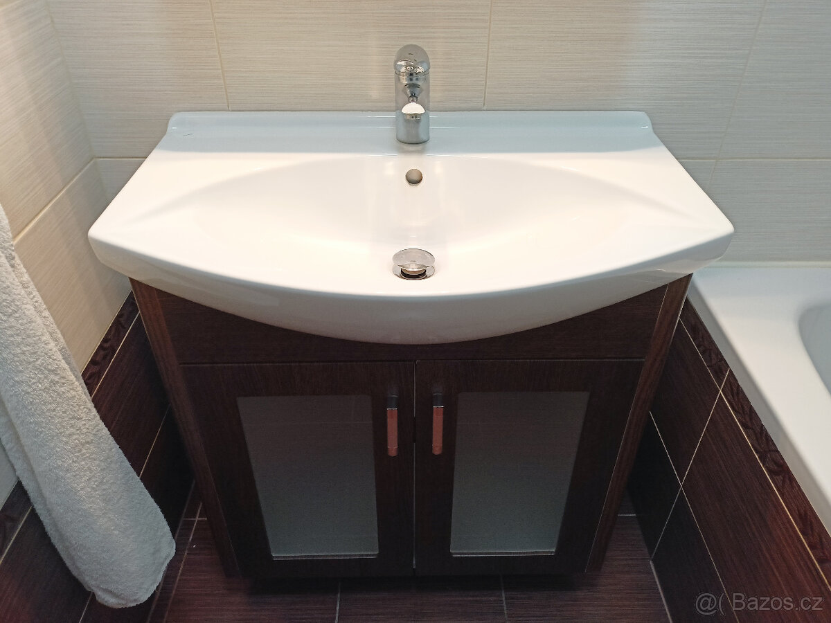 Prodáme set umyvadlo, skříňka, galerka (sestava Dreja z Dřevojasu), baterie (Optima, Siko).