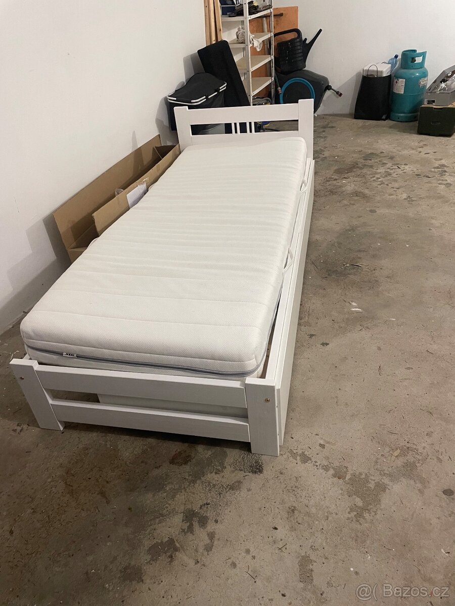 Postel s matrací - [25.2. 2026]Postel 140x200 cm s pružinovou matrací 15 cm, pořizovací cena asi 9000 kč. Několik let používaná, prodáváme, protože kupujeme větší, postel je jinak v pořádku.