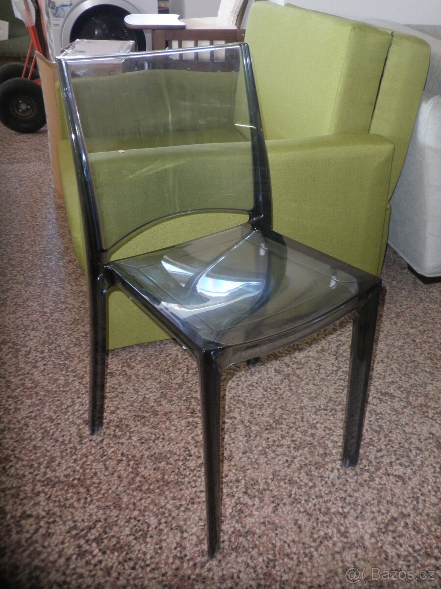 Plastové židle z polykarbonátu, plastové transparentní (vizuelně napodobující sklo), značka B-SIDE, pevné a pohodlné