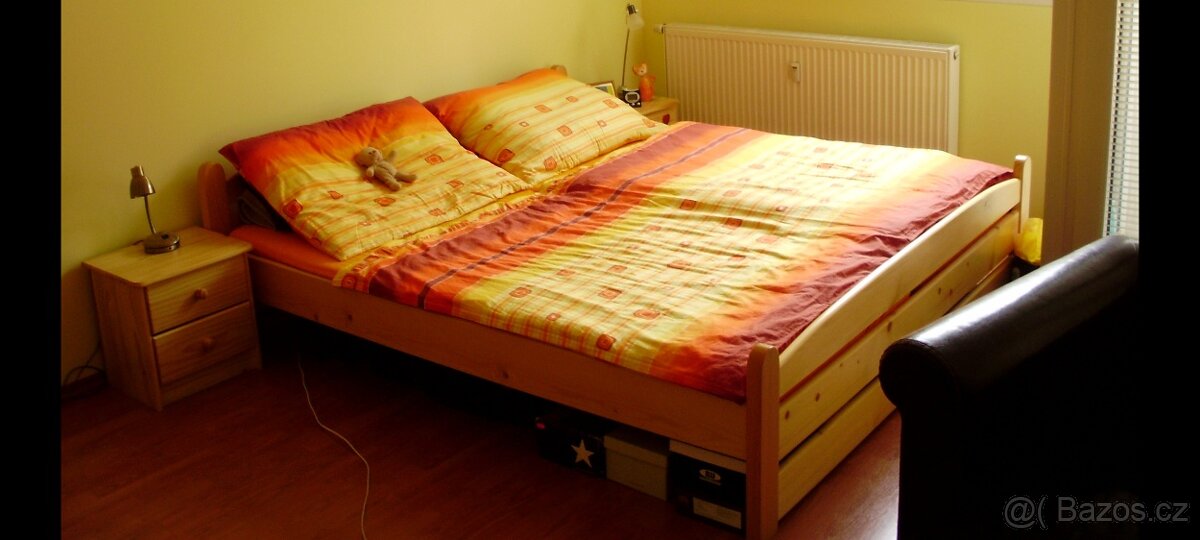 S nočními stolky (z masivu krásné nepoškozené) za 3000kč. Stolky jsou v nabídce i zvlášť za 500kč/kus.
