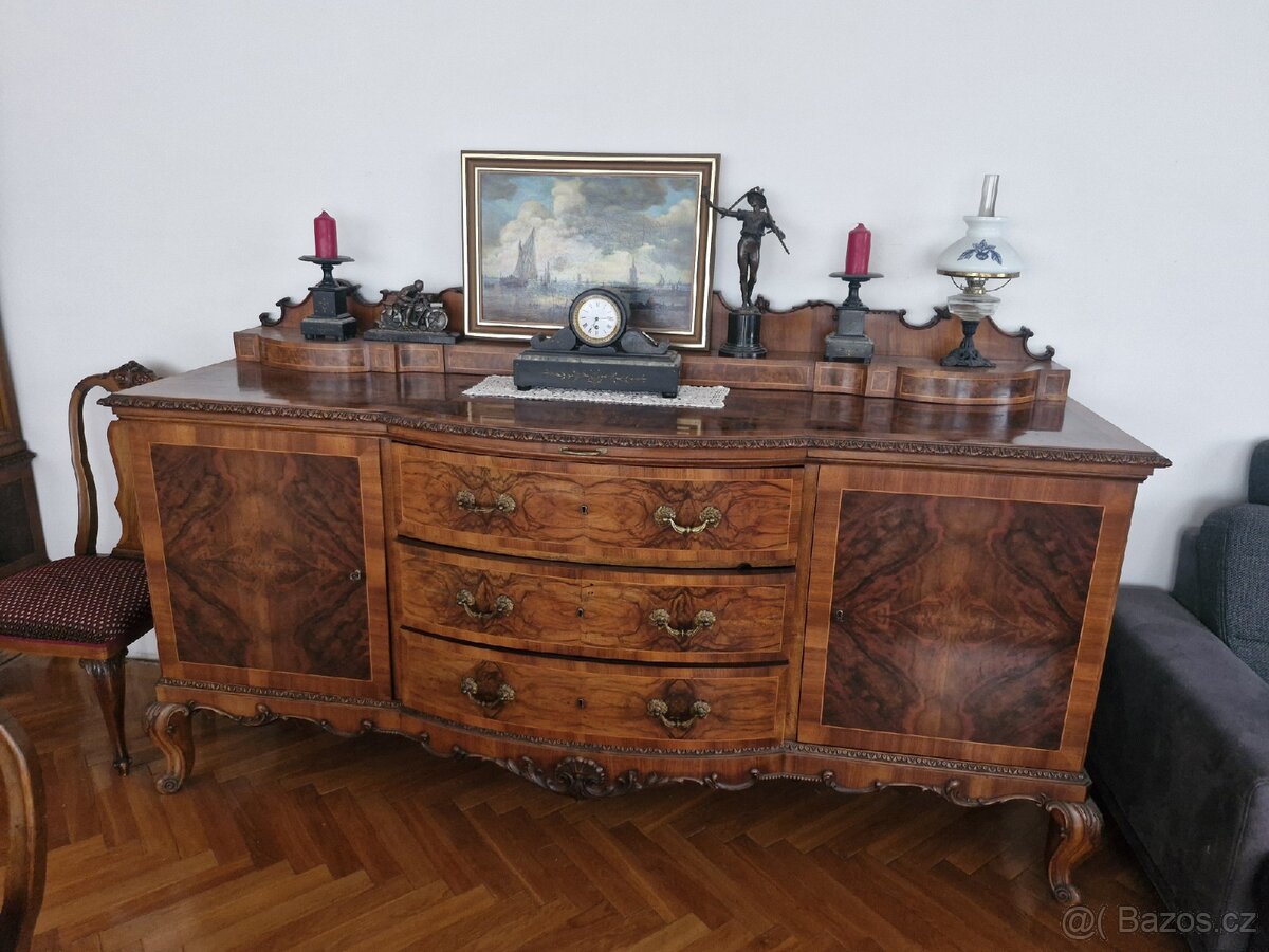 Starožitný nábytek - [25.2. 2026]Prodám tento starožitný nábytek celý komplet.U komody a nízké skříňky je poškozená nožička. Možné i jednotlivě.