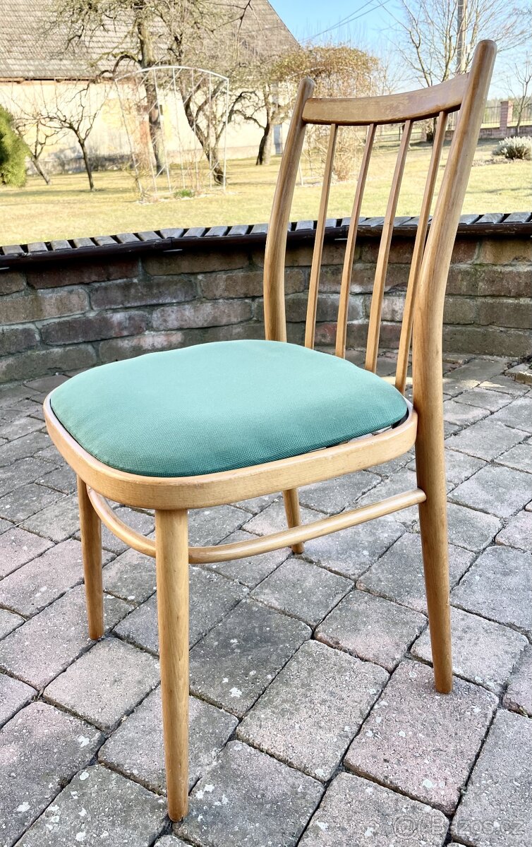 Nabízím starší židle zn. Jitona ze 60. let, stále bytelné, nově potažené sedáky. Vhodné k renovaci povrchové úpravy. Celkem 4 ks.