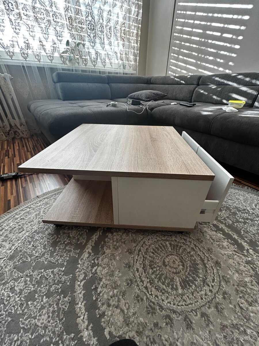 Moderní obývací stěna+stolek - [25.2. 2026]Prodám moderní obývací stěnu, která se skládá ze stolku pod TV a dvou prosklených skříněk,které je možné zavěsit na zeď + stoleček