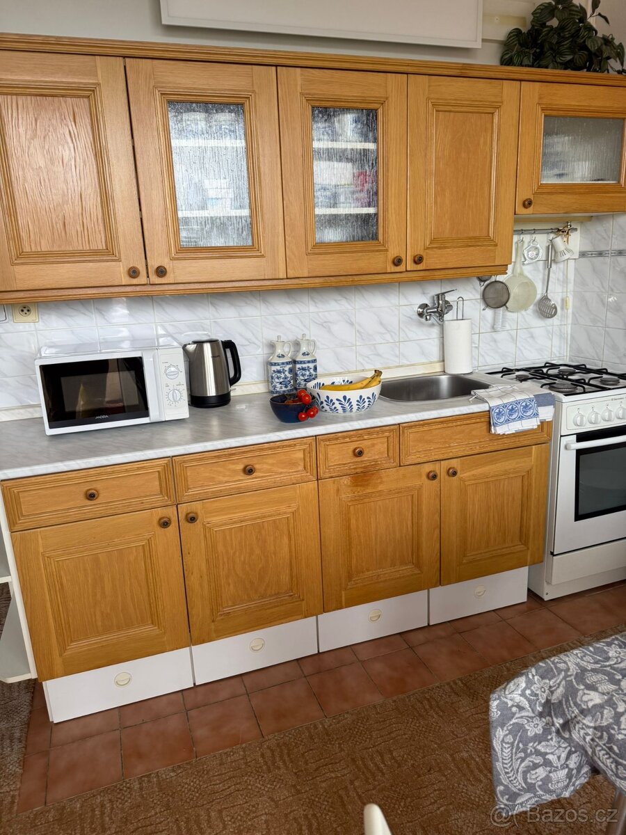 Kuchyňská linka - [23.2. 2026]Prodám zachovalou dřevěnou kuchyňskou linku včetně nerezového dřezu a baterie. Kuchyň má praktické rozložení, dostatek šuplíků a úložného prostoru. Šířka spodní časti je 338 cm, výška pracovní desky 90 cm. Panel na vestavnou troubu disponuje výškou 1 ...