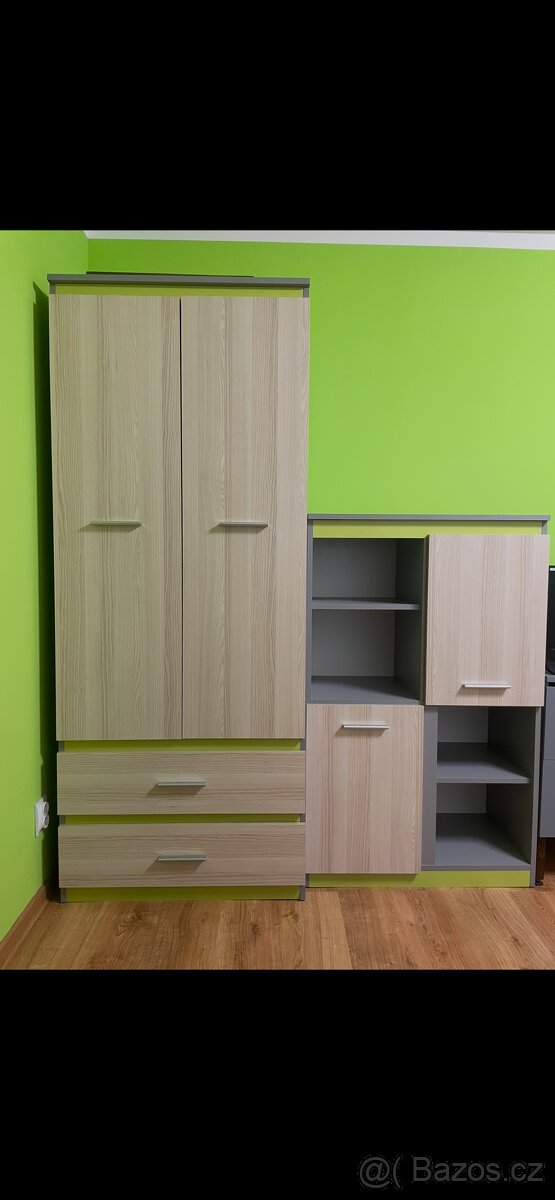 Nábytek Dětský pokoj (cena za vše) - [24.2. 2026]Dobrý den, nabízím set dětského pokoje, který obsahuje dvě skříně, regál, komodu a rám postele :) Nábytek je 10 let starý a prošel úpravou, ale myslím si, že ještě poslouží u komody byly opotřebované kolejnice viz foto, ale je to z důvodů těžkých hra ...