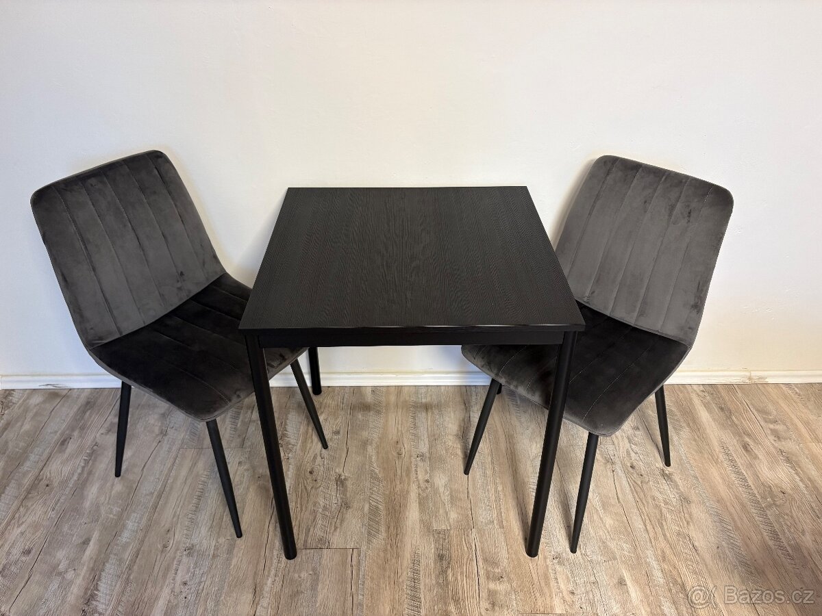 V černé barvě + čtyři židle.