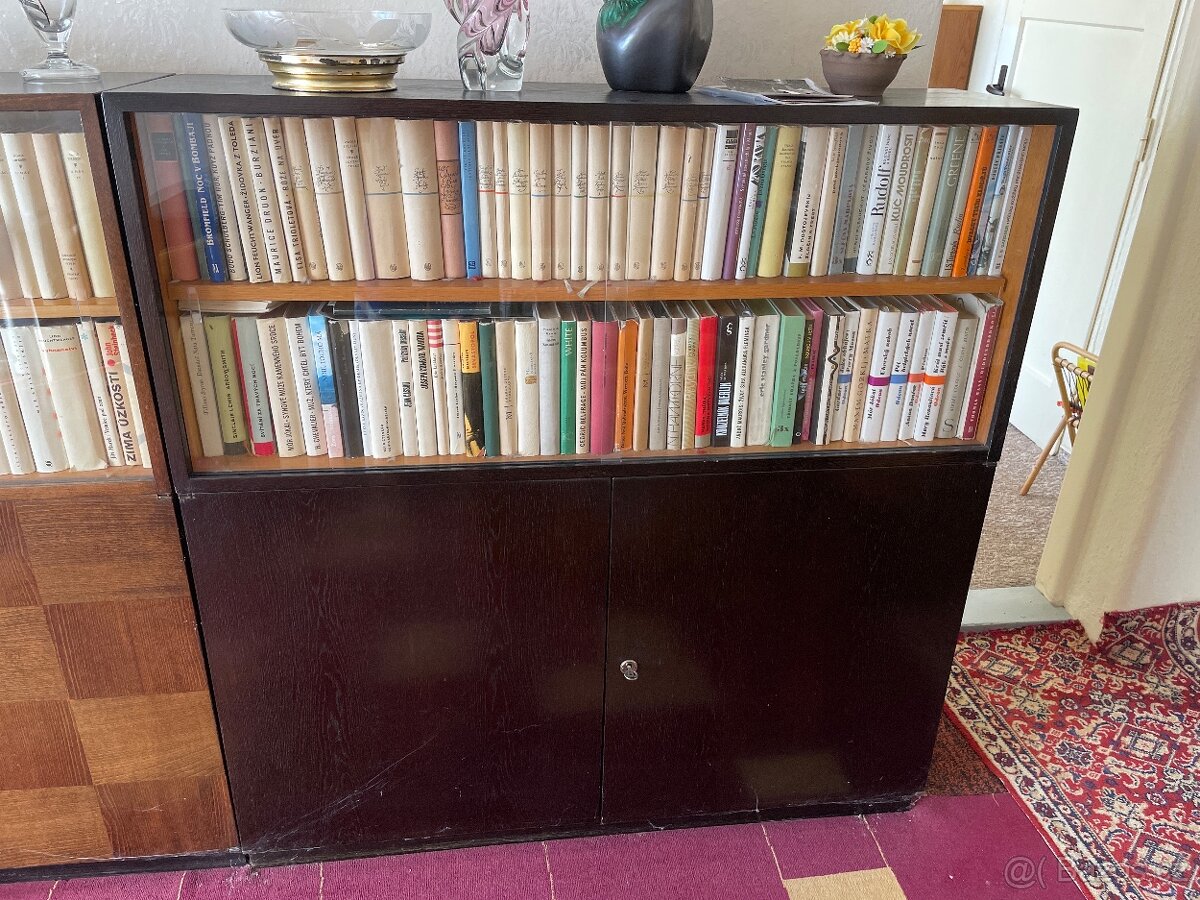 2 ks staré knihovny. - [26.4. 2026]2 ks staré knihovny z 70. let. Dřevo. Jedná se o 4 ks. Vždy spodní díl s dvířky a polici uvnitř 2x a horní nádstavec knihovna 2x. Bez skla. Nutný odvoz. Cena 400.- Kč za vše.