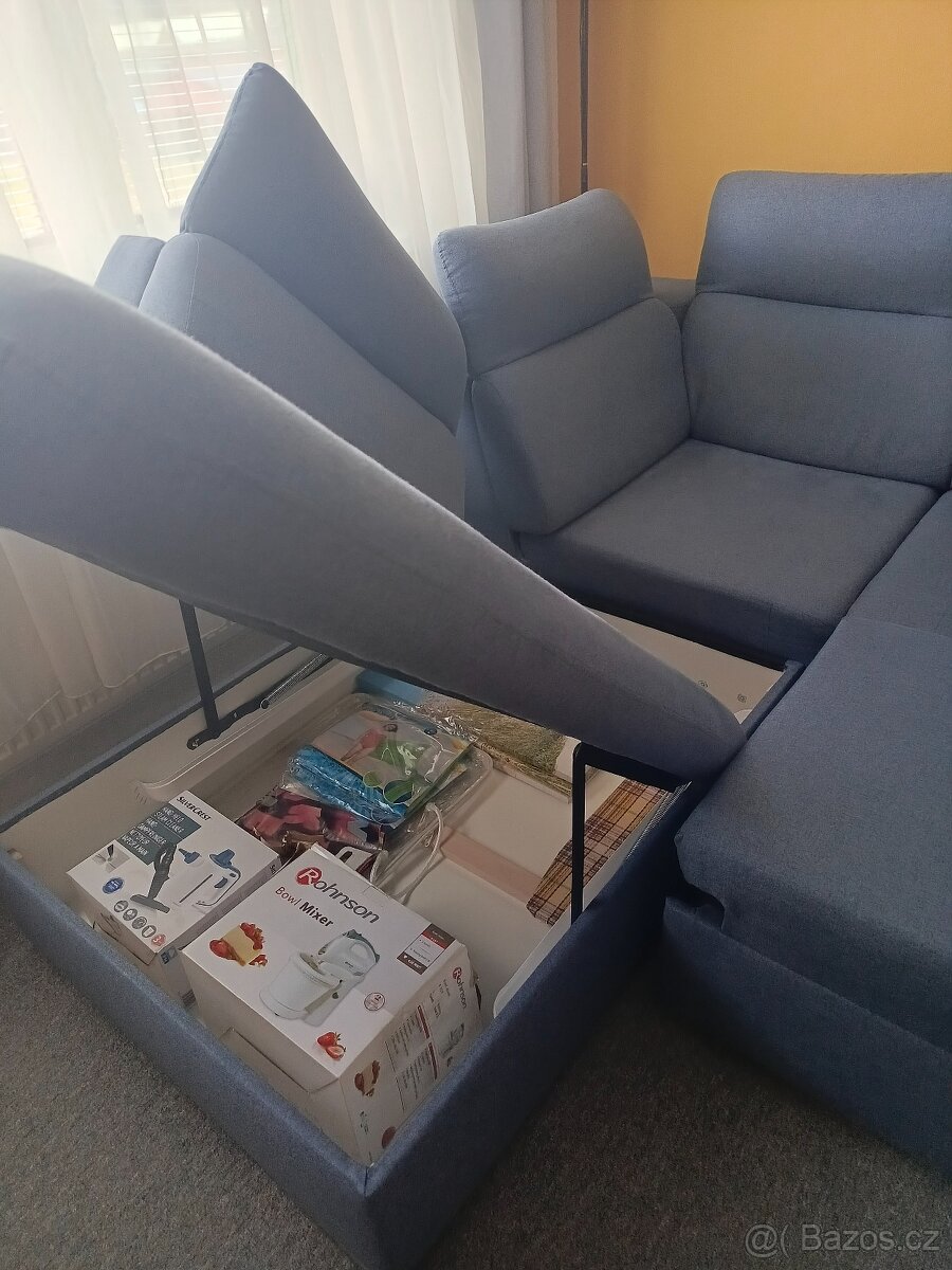 Prodám sedací soupravu v šedé barvě,rozkládací,s úložným prostorem,zachovalá,čištěná,nastavitelné opěrky hlavy.Rozměry