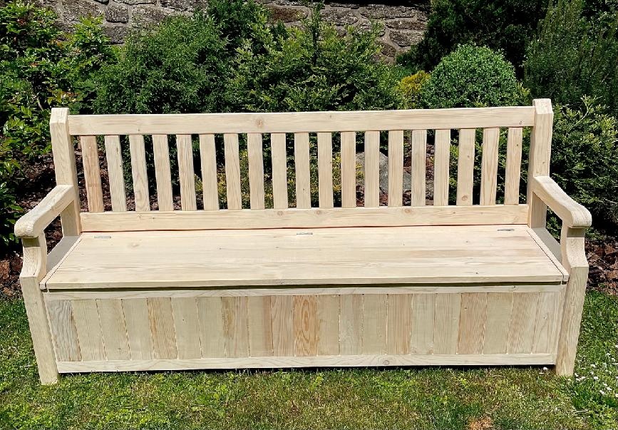 Masivní zahradní lavice s úložným prostorem, v. sedáku 43 cm, h. sedáku 45 cm, celková v. 95 cm, d. od 120 - 300 cm, cena od
