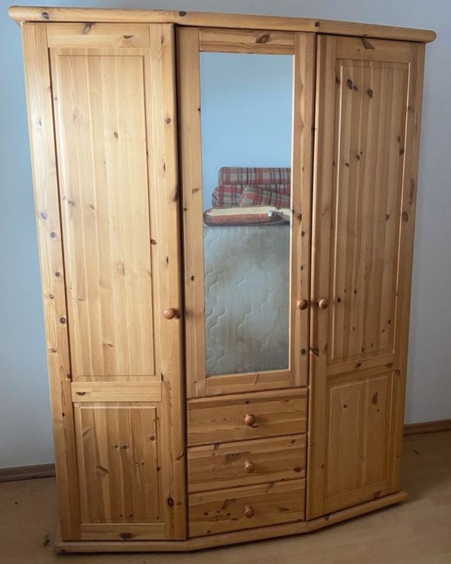 Šatní skříň - [25.2. 2026]Prodám zachovalou třídveřovou šatní skříň nejspíše z poloviny 20. století.