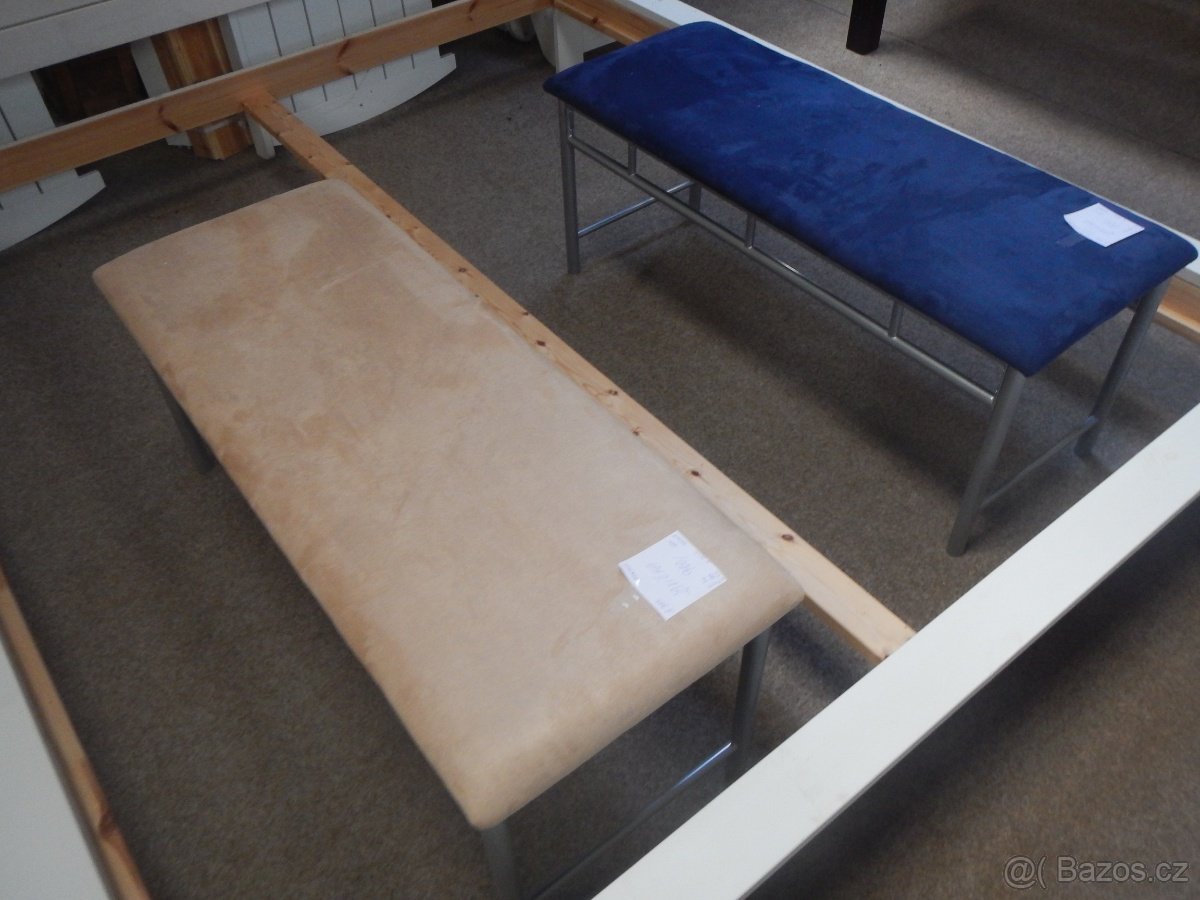 Lavička výška 46cm, délka 112cm, šířka 43cm. Kostra kov, potah mikroplyš. Máme už pouze v modré barvě. Vše nové v původním obalu.