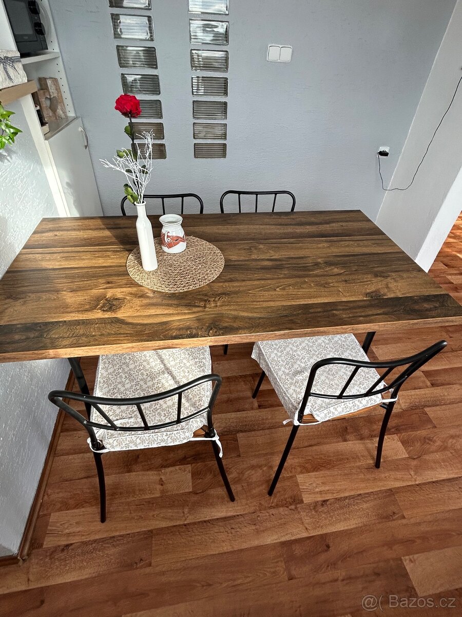 Prodám rok starý lehce použitý jídelní set, stůl 120x80 se 4 židlemi.