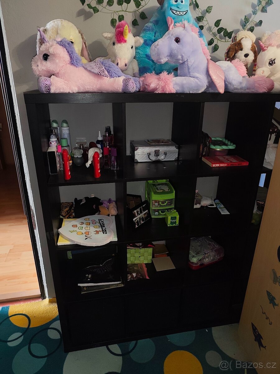 Prodám Ikea knihovnu 4x4 černou. Je v celku,nerozebraná. Cena je pevná 1000 Kč.