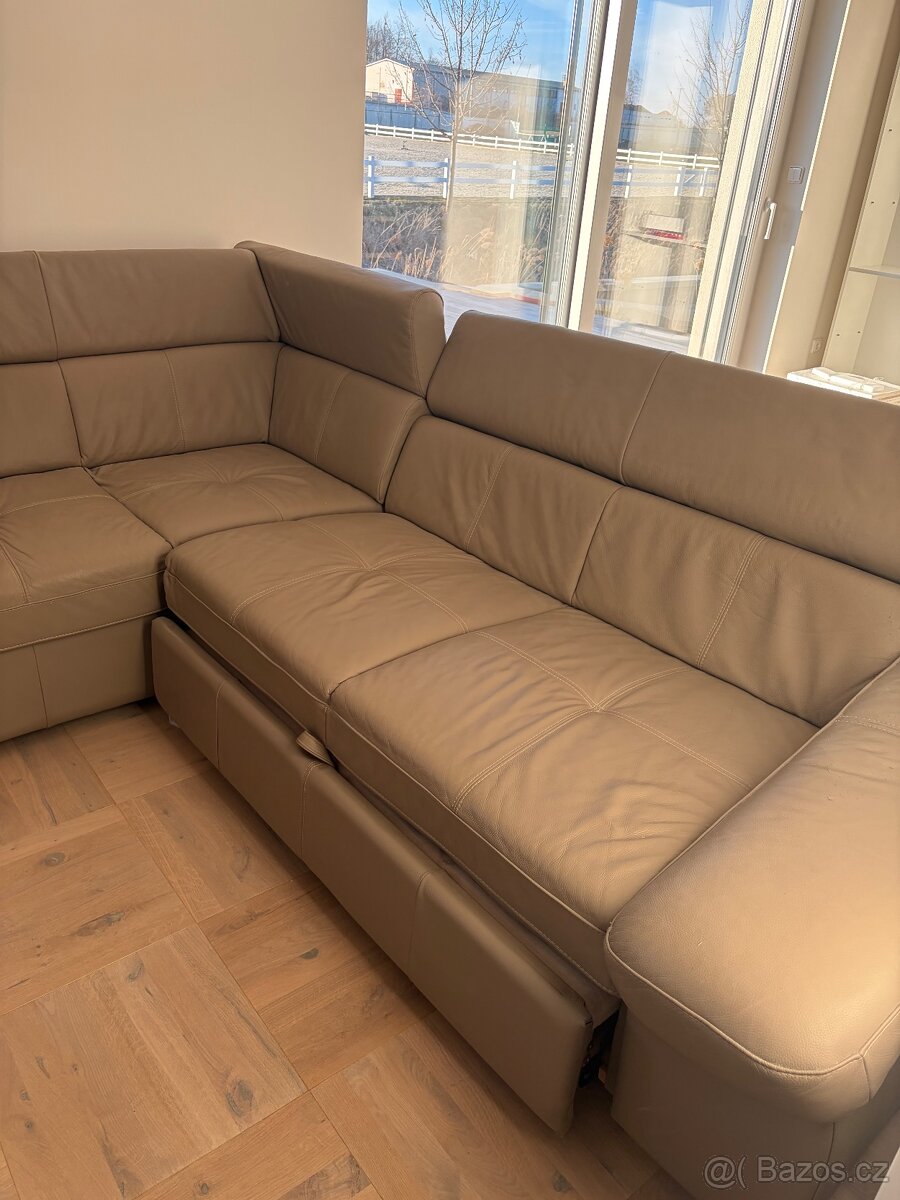 Prodám rozkládací koženou sedací soupravu s úložným prostorem.