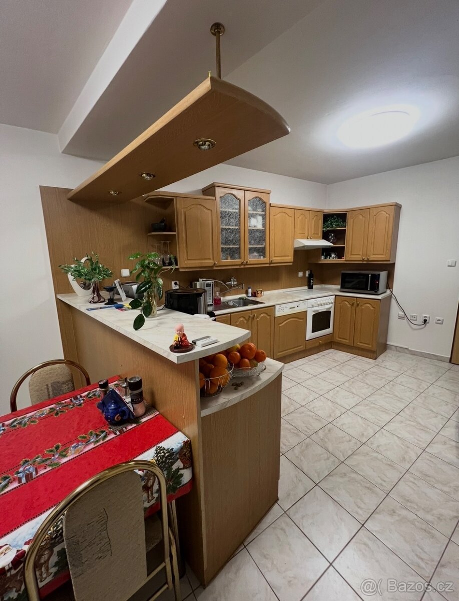 Prodam pouzitou kuchyňskou linku se 3 spotrebici- odsavač, varna deska plyn, el. trouba a stůl v barve- bez zidli.