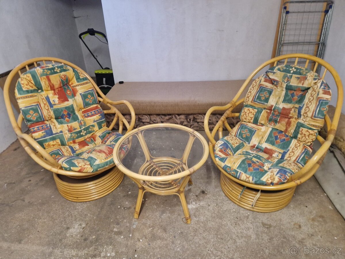 Ratanová otáčivá křesla se stolkem