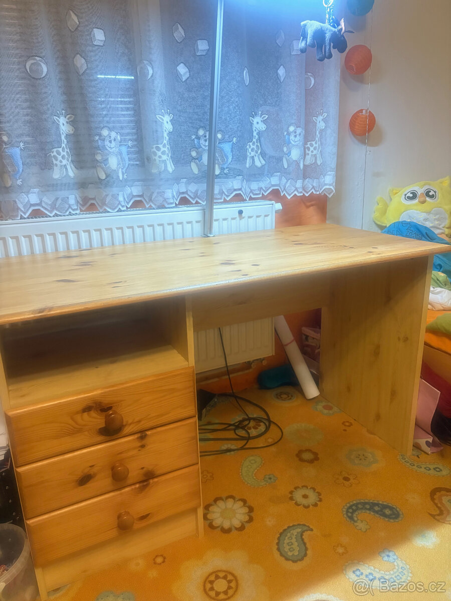 Psací stůl - [26.2. 2026]Prodám krásný nepoškozený psací stůl. Rozměry: š/140cm,v-prac.plochy 77cm,v-celkova 91cm,hl/55cm Cena 1200kč Nutný vlastní odvoz