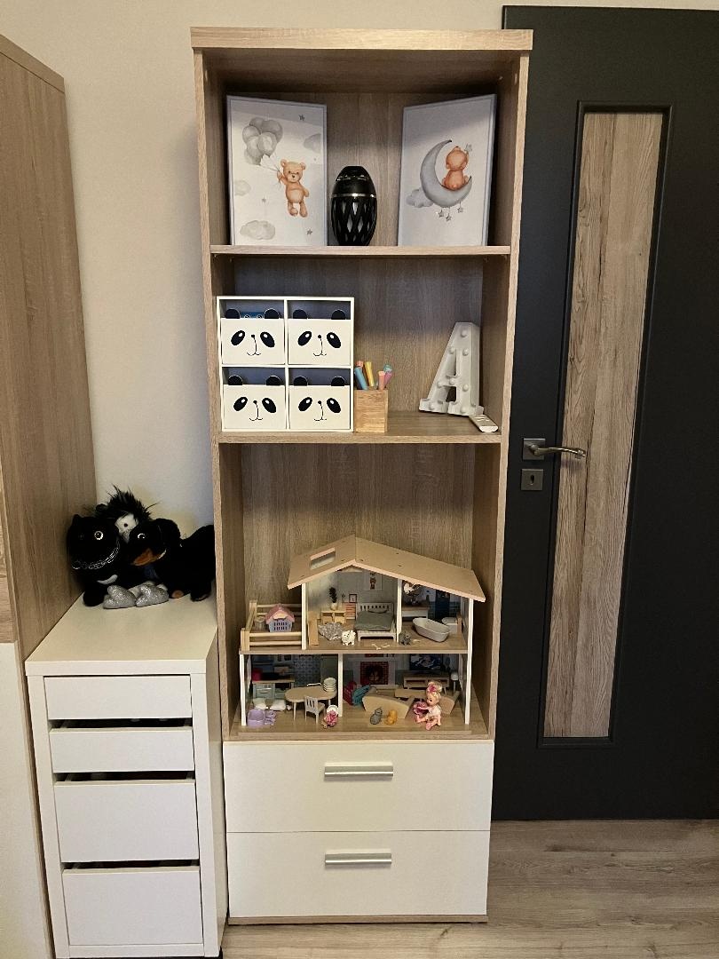 Barva bílá/dub Sonoma, na obrázku je 1 polička odebraná, nicméně je k dispozici