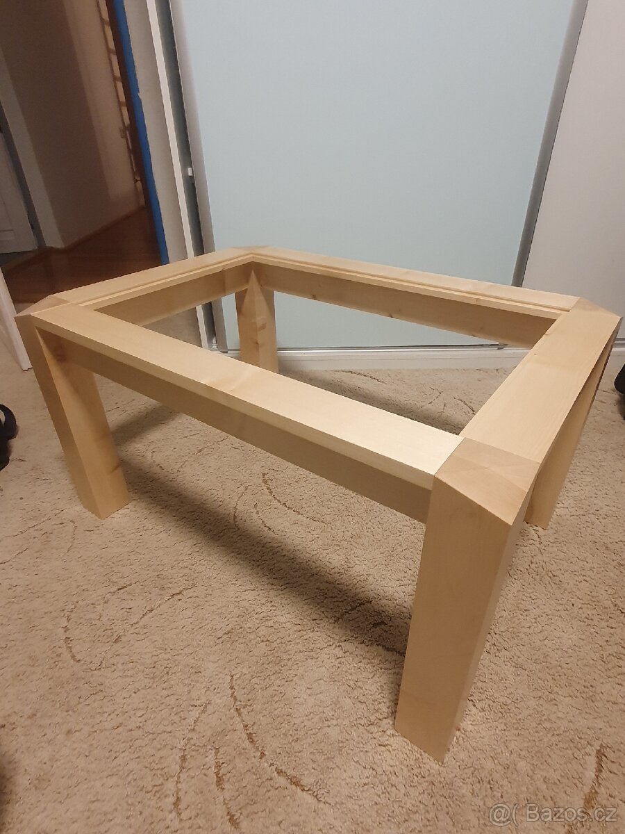 Prodám masivní konferenční stolek ideální do obýváku, materiál javor, rozměry 58×63×45, bez skla-mohu sehnat, spoje: domino a kolíky, povrchová úprava: nitro lak