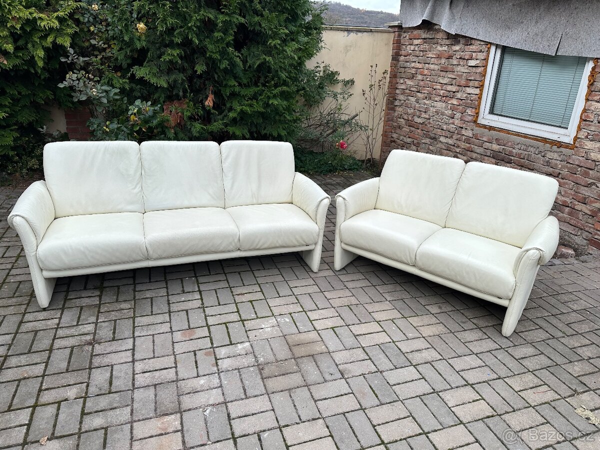 Prodám krásnou koženou sedací soupravu luxusní německé značky Elastoform® v sestavě 3 + 2 (trojsedák a dvojsedák). Sedačka je vyrobena z pravé kůže, má polohovací madla a je ve velmi dobrém stavu, bez jakéhokoliv poškození.