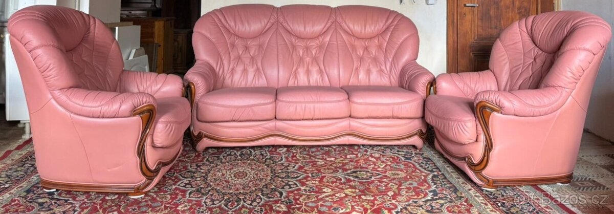 Luxusní italská kožená sedací souprava 3+1+1, 5252 - [27.2. 2026]Nabízím k prodeji luxusní italskou koženou sedací soupravu ve starorůžovém odstínu.