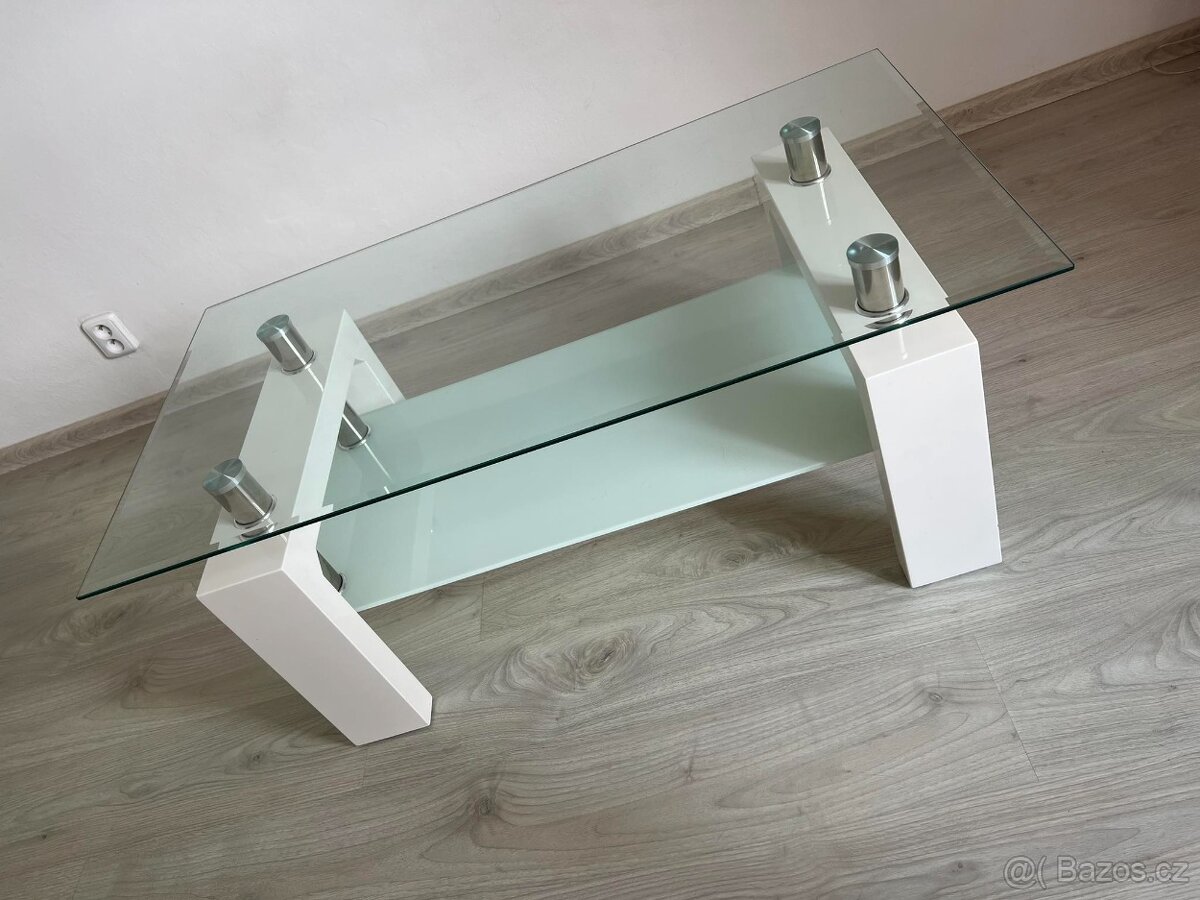 Prodám konferenční stolek skleněný v bílé variantě. Rozměry - délka 110 x šířka 60 x výška 45 cm.