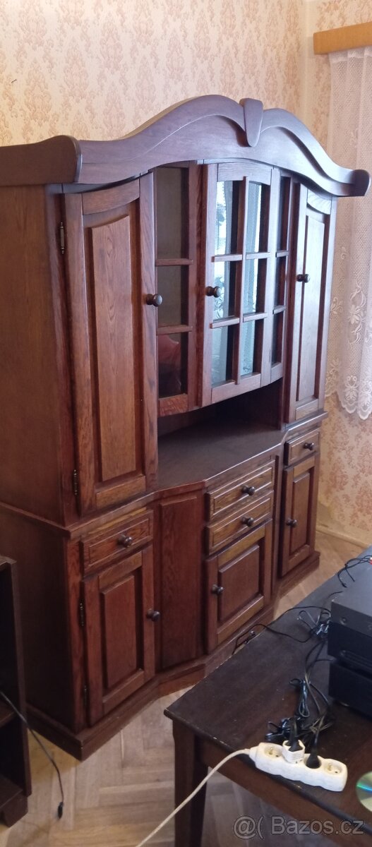 Rustikální jídelní kout a kredenc z masivu – modřin - [31.3. 2026]Prodám jídelní sestavu z kvalitního masivu (modřín) v rustikálním stylu. Set zahrnuje: