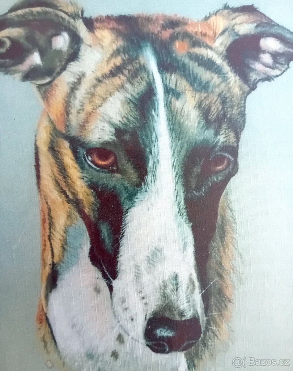 Obrázek v rámu. Obrázek chrta. Greyhound. Whippet. Vipet. 34×25 cm