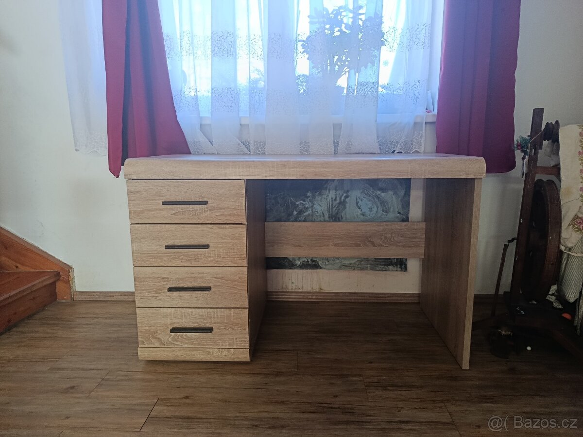 Kancelářský stůl, Dub sonoma, LIVEA BIU 120, šířka 120 cm, výška: 76 cm, hloubka: 59 cm, váha: 44 kg, materiál: lamino. Používaný ale v dobrém stavu, žádné škrábance, nepopsaný. Ideálně osobní odběr Mnichovice nebo Zlín, ale po domluvě zvládneme i zaslat.