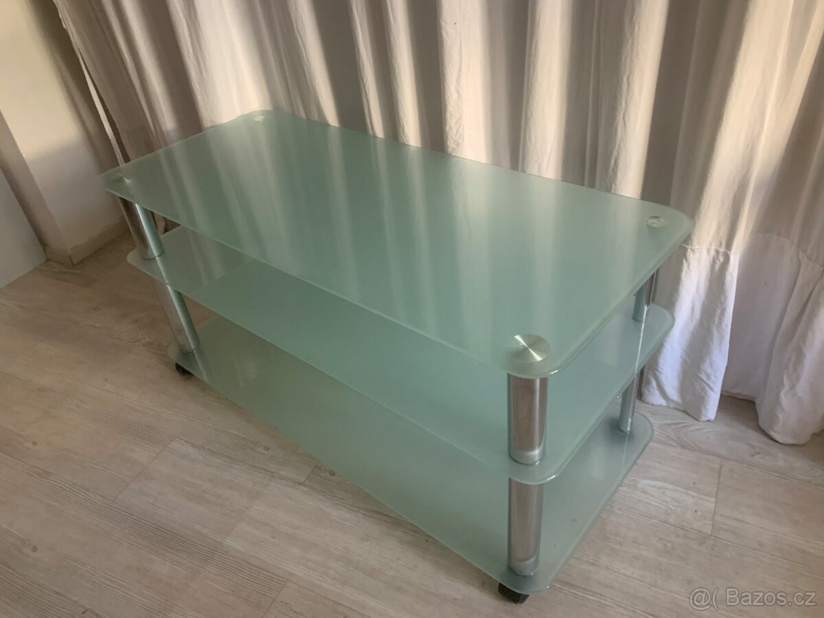 Prodám pojízdný konferenční stolek 105x45cm, výška 50cm mléčné sklo- chrom