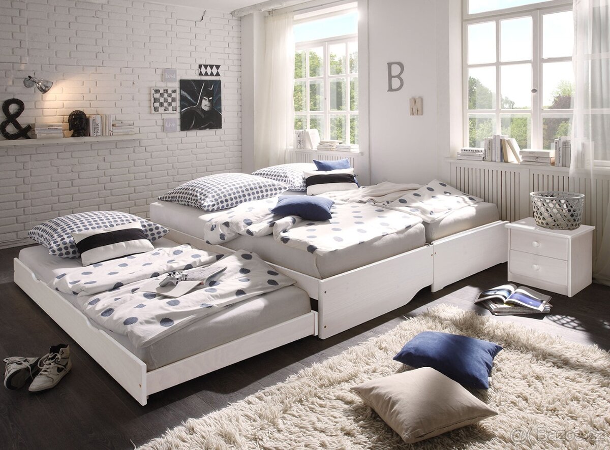 Rozkládací postel masiv - [26.2. 2026]Rozkládací postel z masivu borovice s kovovým mechanismem. Druhá postel zajede pod první s matrací. Lehké rozložení během chvilky. Postel na matrací 2 matrace 90x200cm.Postel je fakt pevná a robustní. Původní cena 23 tisíc tomu odpovídá. Nechám za po ...
