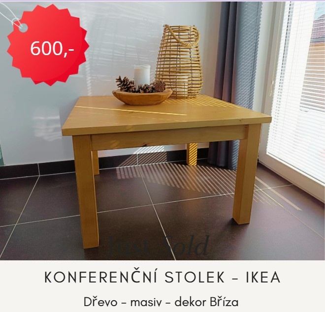 Prodám bytelný a stále velmi pěkný konferenční stolek z IKEA v dekoru bříza. Stolek je používaný, ale ve velmi dobrém stavu, díky své konstrukci je stabilní a pevný.