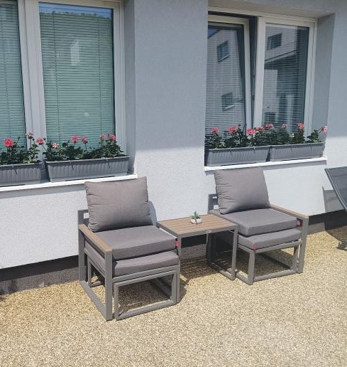 Zahradní ocelový set nábytku. - [27.2. 2026]Prodám designový ocelový nábytek.Viz foto.Vysoká nosnost.Na křesilkách je hodně místa na sezení,pro pevnější postavy..Cena za komplet 5900kč.Přelouč.