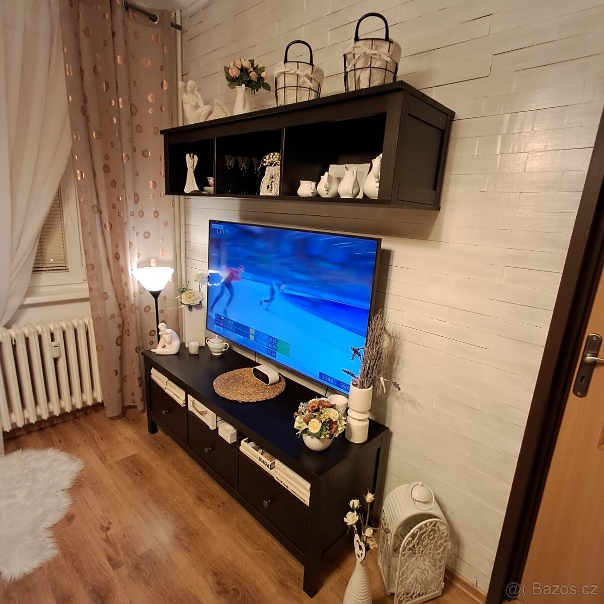 Nábytek Hemnes, černohnědý, Ikea. Zachovalý, známky běžného užívání. Tv stolek.150x55cm. Nástěnná police 150cmx32cm. Komoda110x100cm. Knihovna 45x180cm. Konfenrenční stolek s 2/3 sklem na horní desce, 110x69cm, s policí a 2 velkými košíky. Osobni odber Moravska Trebova…cena 8000 kč