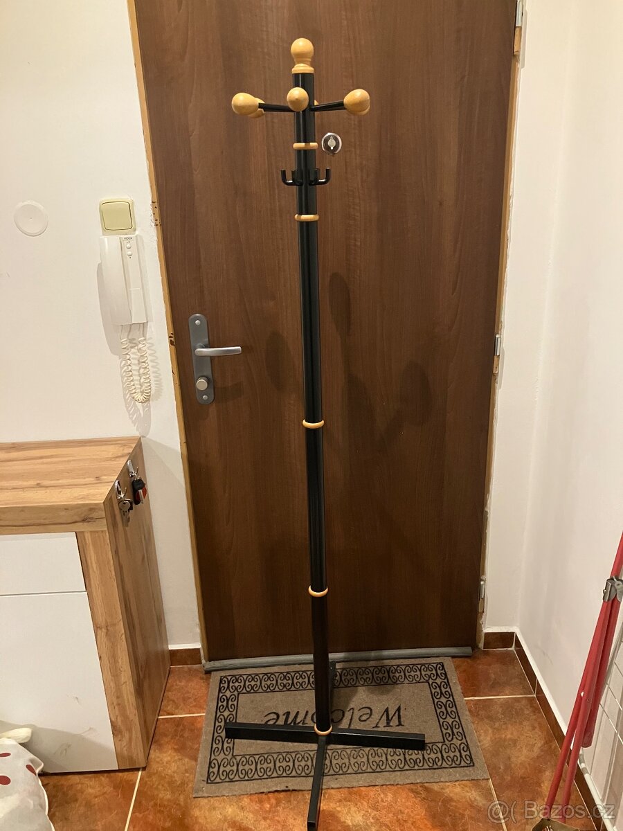Prodám stojan na kabáty černo dřevěný, výška 168 cm, cena 100 Kč + vlastní odvoz.