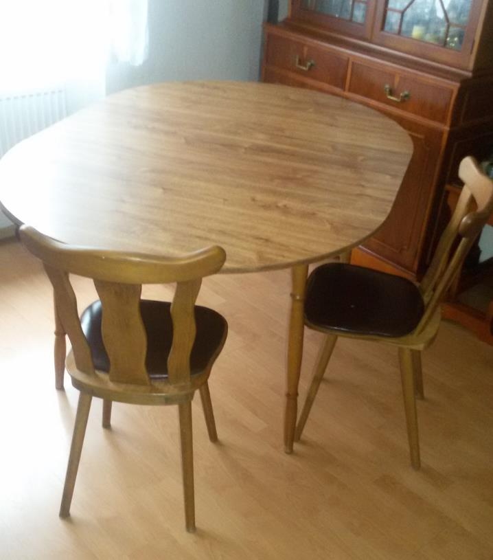 Kulatý stůl a 4 židle, dřevo dub rustikal. Průměr stolu 110 cm.