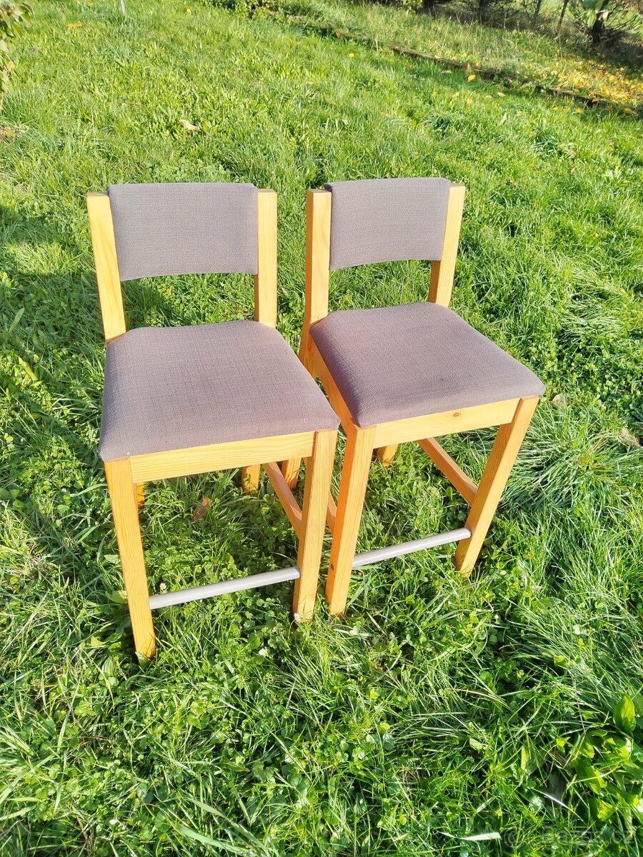 Barové židle - [21.4. 2026]Prodám dvě barové židle kupované v Ikee. Používané, jeví známky běžného opotřebení. Cena za obě.
