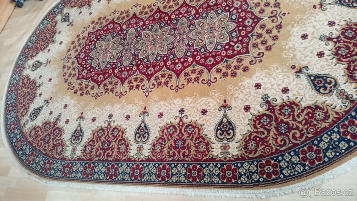 Prodám levně používaný ale nepoškozený oválný koberec, rozměr: 200 cm x 300 cm, perský vzor. Cena 490,- Kč. Pouze osobní odběr 7 km od Tábora.