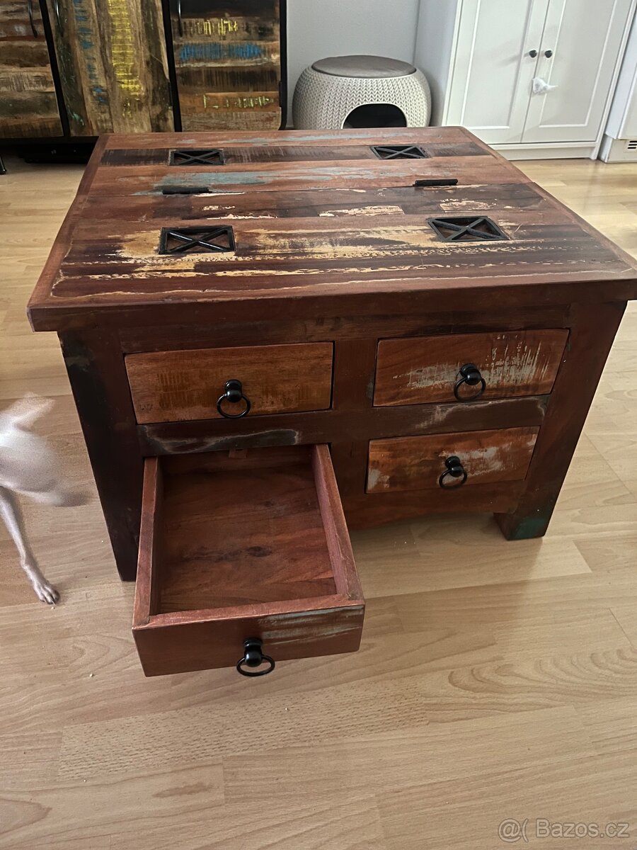 Prodám úplně nový konferenční stůl z recyklovaného exotického dřeva. (mango, palisandr,…) Jedná se o kvalitní masiv. Důvod prodeje: Nehodí se mi barevně k dalšímu nábytku.