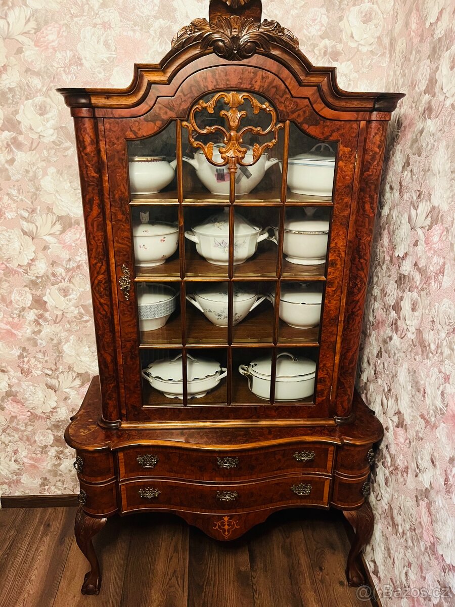 Prodám nádherný starožitný nábytek. 3x skleněná vitrína. Pouze osobní odběr