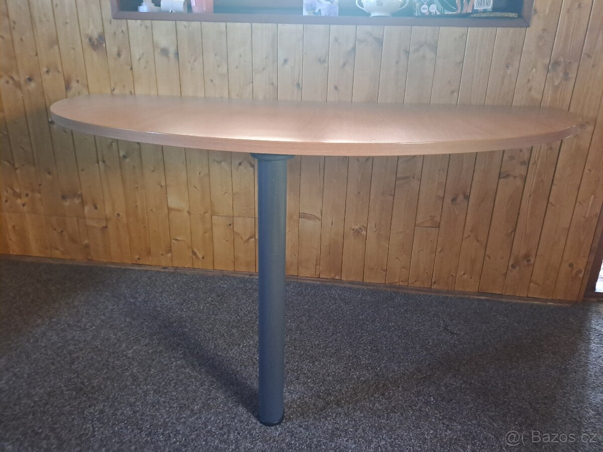 Nabízím viz.obr. půlkulatý stůl s jednou nohou šedé barvy pro montáž na zeď. Světlé dřevo,nepoškozen.160 X 80 cm.