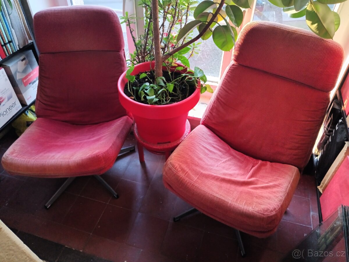 stáří křesel 20 let, k dispozici 2 ks, barva potahů je vyšisovaná viz foto, potahy jsou pratelné,