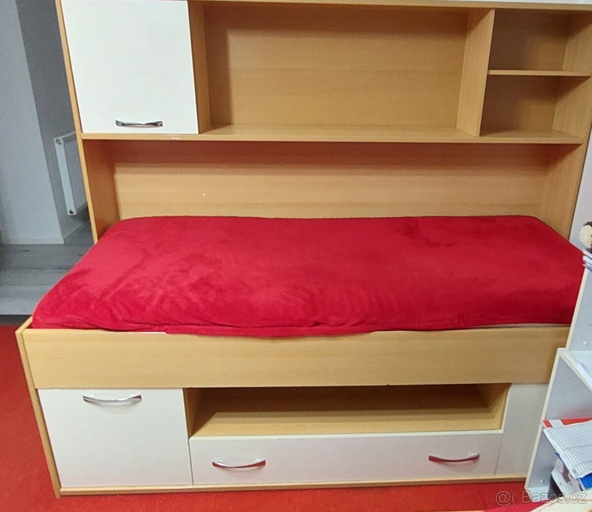 Prodám postel do dětského pokoje s úložným prostorem. Míry: 96 x 204 x 66. K posteli zdarma i matrace.
