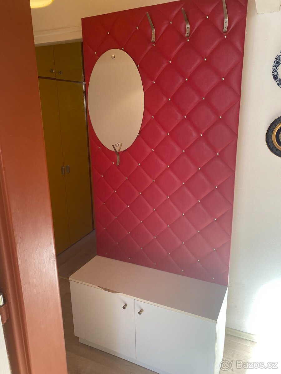 Součástí je čalouněný věšák s háčky, zrcadlo a botník/skříňka.