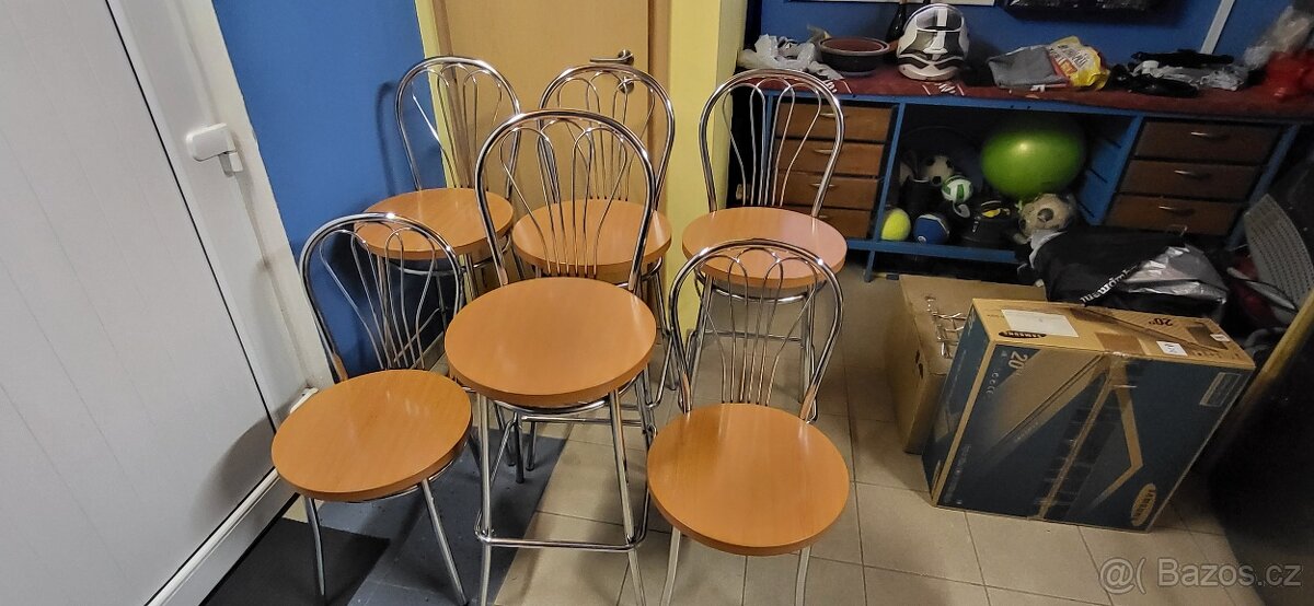 - [17.4. 2026]Prodám 4ks barových židlí a 2ks nízkých židlí,materiál chrom+dřevo třešeň,použité,ale velmi zachovalé,zakázková výroba.Cena za kus 600,-Kč,nízké za 300,-Kč.Nebo za vše komplet za 2500,-Kč.Osobní odběr Líbeznice.