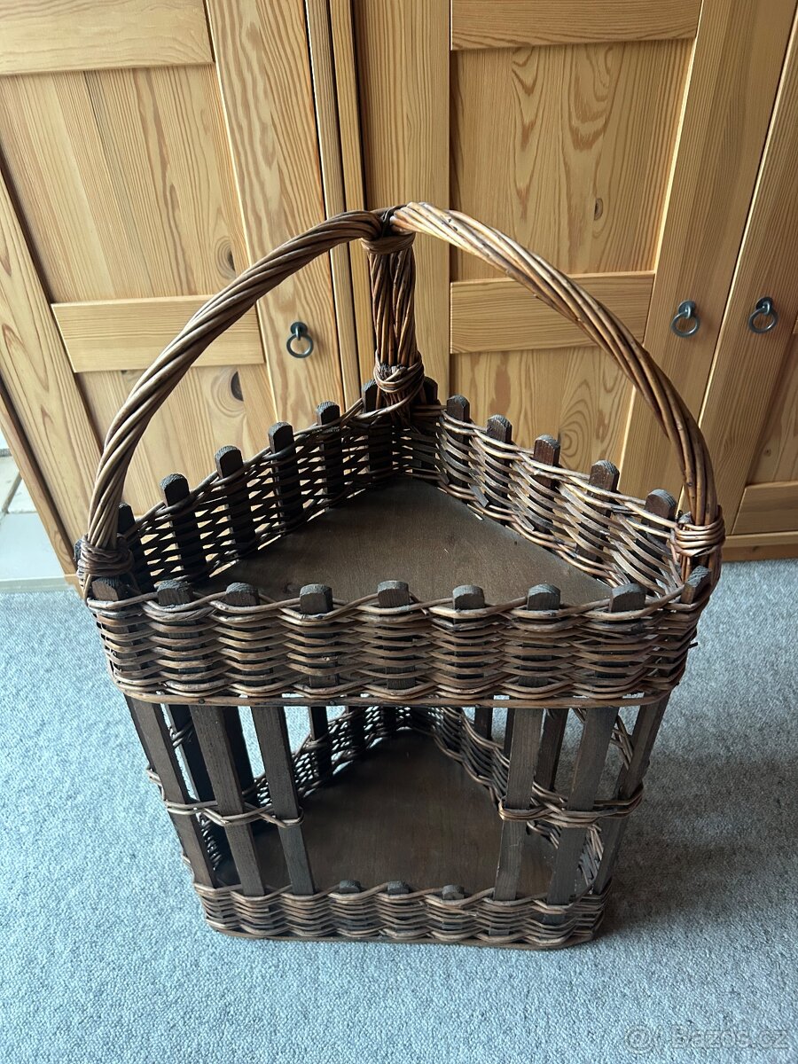 Prodám ratanový/proutěný prvek na květiny,má trojúhelníkový tvar, 33x33x44 cm, výška 70 cm, nevyužiji.