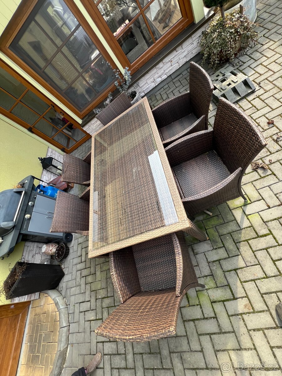 Prodam ratanovy zahradni nabytek jak je na fotka,jedna zidle zacina praskat jak je videt na fotce,zbytek je v poradku