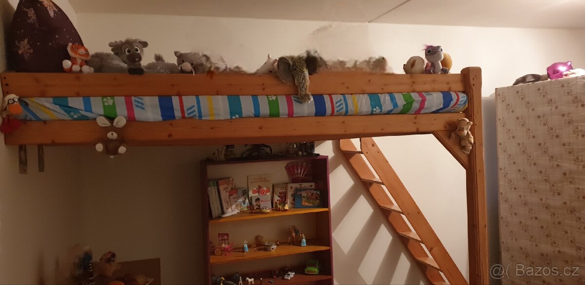 Prodam postel pod strop. Postel je ze dřeva. Momentálně je rozebrána na dily. Výška 180cm. Plocha pro spaní je 2x2m.