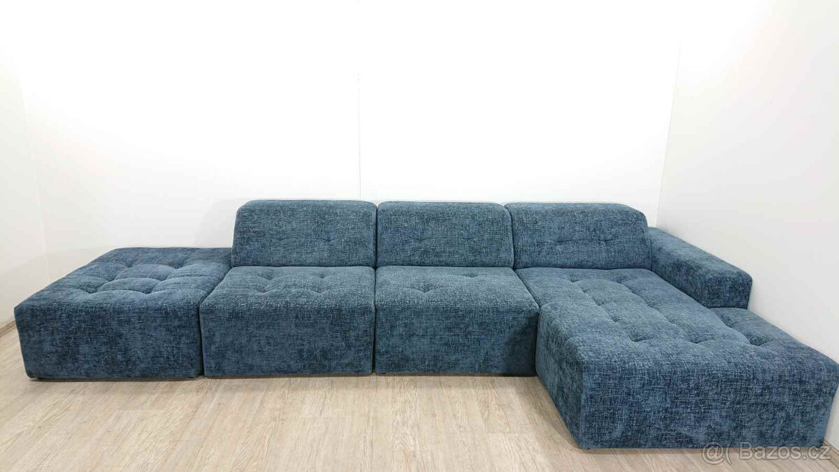- TOP - [11.4. 2026]Prodám stylovou rohovou sedačku ve tvaru L v krásné petrolejově modré barvě. Sedačka je pohodlná, prostorná, vhodná do obýváku.
