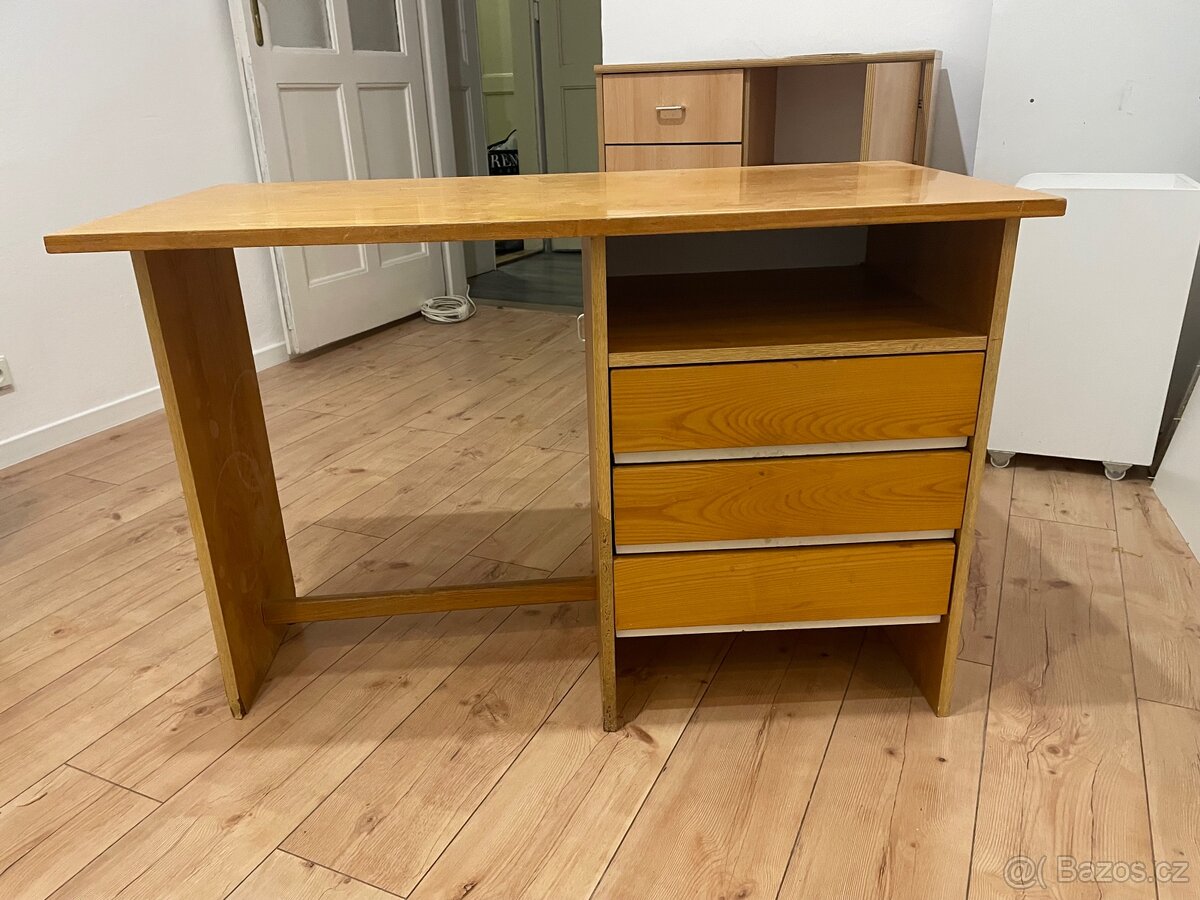 Stoly - [8.3. 2026]Prodám psací stůl, jídelní stůl(možnost roztáhnout na oválný)křeslo ( je potřeba znovu potáhnout) cena dohodou